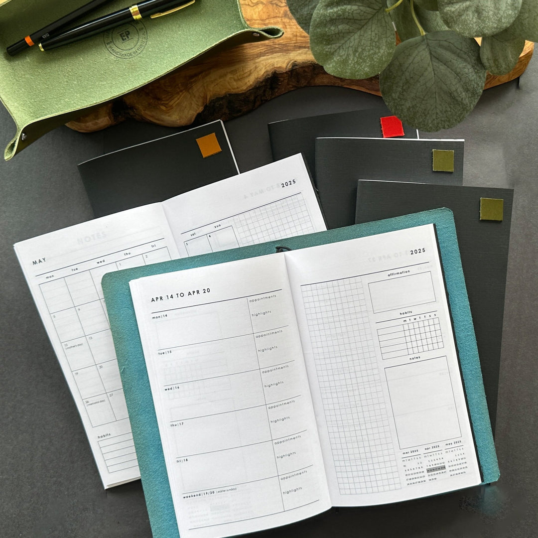 The Flex Notes collection is a versatile system of planning and note making that lets you be flexible in your choice of inserts. Instead of lugging around two different full sized planners/notebooks, Flex notes is lighter in your bag allowing you to carry up to 4 styles of slim notebooks in one! Pair these li'l black books with our Large (5.75" x 9") journal covers as your statement planning system.
